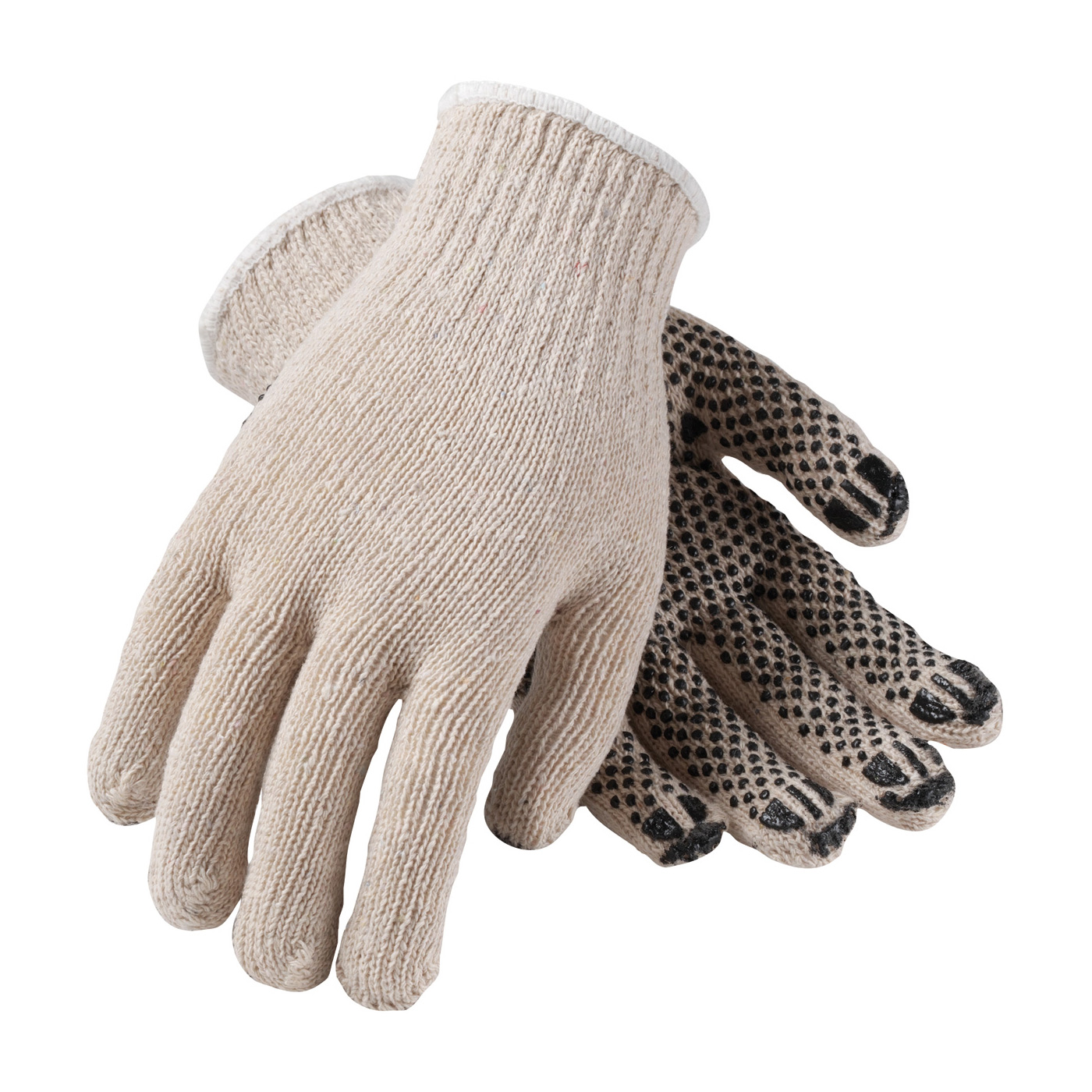 - Size large PVC dot coated natural colored cotton/polyester gloves