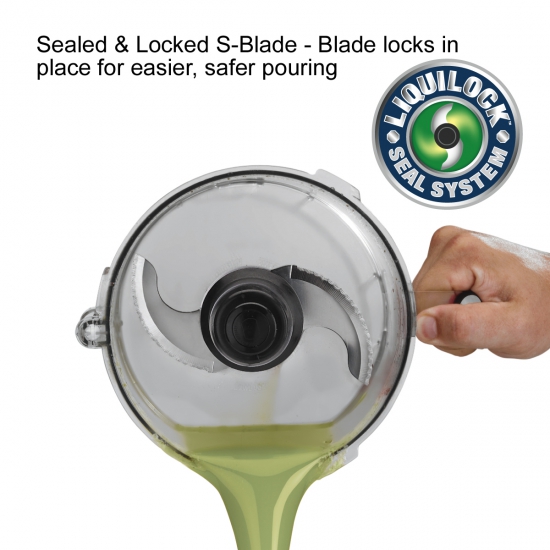 - Large, 2.5-quart heavy-duty clear-view batch bowl with LiquiLock® Seal System – process soups, sauces, marinades, and more without leaks